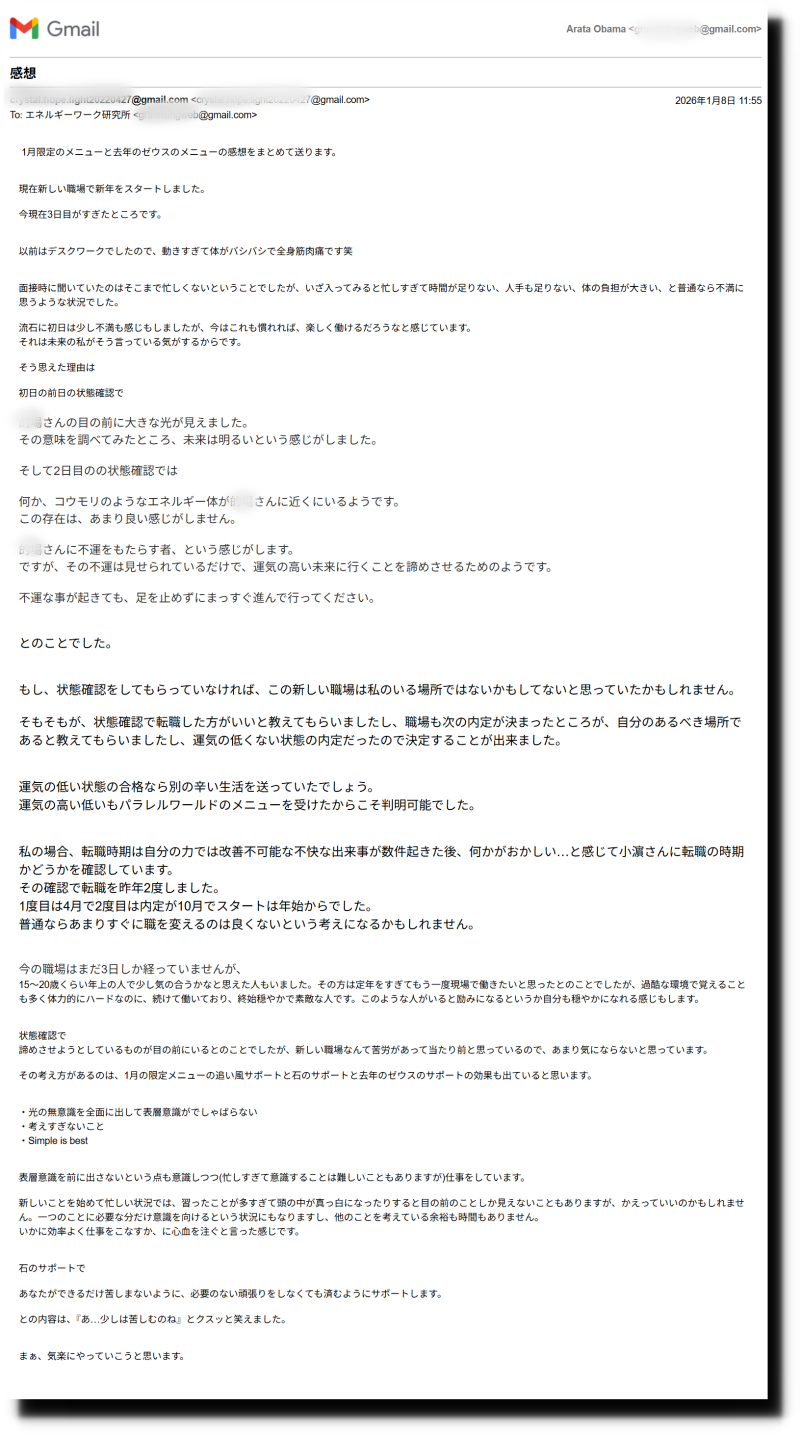 今回のお客様は、僕のところに来て以降、バイオリズムが落ちる時にズドンと落ちることなく、一歩一歩良い未来へと進んで行くような現実化をされているので、やはり毎日の積み重ねというのは非常に大事なのかもしれません。